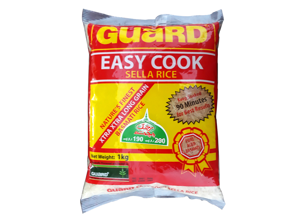 Guard Easy Cook (Sella) Basmati Rice is produced from the selected paddy of 1121 Basmati rice variety that is carefully processed in a state of the art parboiling plant to give the world the authentic parboiled taste. This rice has been pre-steamed to seal in the goodness and to make sure the result is fluffy & separate grains every time it is cooked. With an average grain length of 8.3mm it is characterized for its extra extra long grain, unique aroma, non-stickiness and exceptional quality.